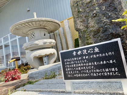 幸水洗心庭に看板が立ちました! 2023年4月17日(月) 幸水洗心庭に看板が立ちました。黒の背景にシルバーの枠と文字で、50周年にふさわしい美しいデザインとなっております。是非貴社に立ち寄った際は御覧になってみてください。